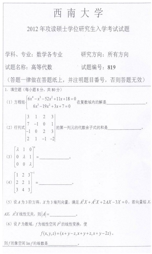 专业课半岛在线注册资料 本站小编 半岛在线注册 2018-02-232010年西南大学