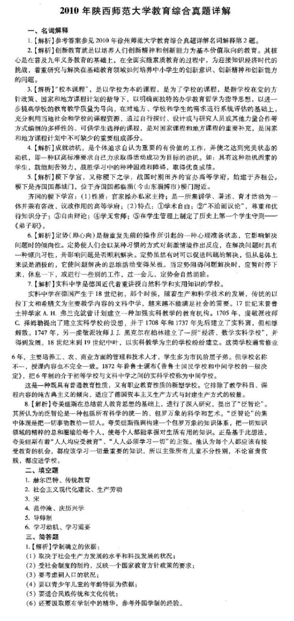2010年天津师范大学333教育综合真题 一、名词解释 1.教育目的: 2.课程 3.守恒 4.成就动机 5.苏格拉底方法 6.《1988年教育改革法》 二、简答题 1.简述人的身心发展的一般规律 2.简述人文主义教育的特征 3.简述美国公立学校运动的主要内容 4.简述宋朝历史上三次著名的兴学运动 三、 ...