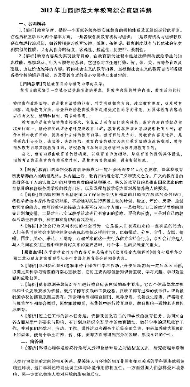 山西师范大学2012年333教育综合真题