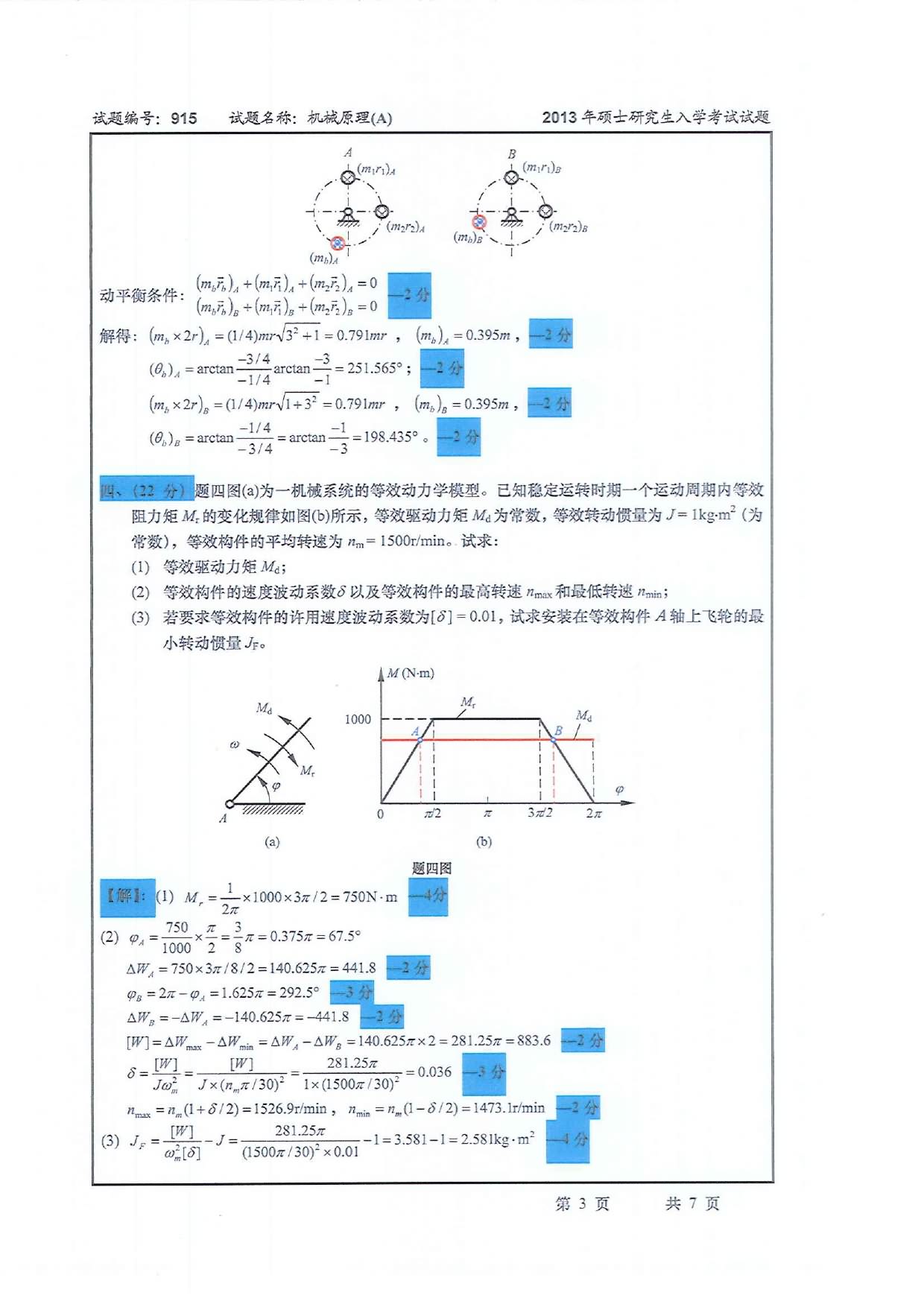 东南大学2011-2015机械原理915半岛在线注册真题带详细答案(15)
