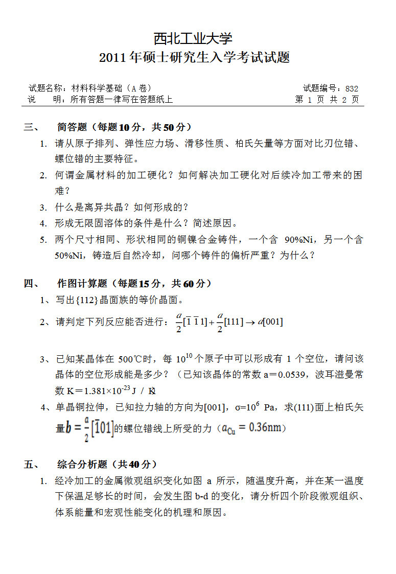 西北工业大学2008-2011材料科学基础半岛在线注册试题与答案(16)