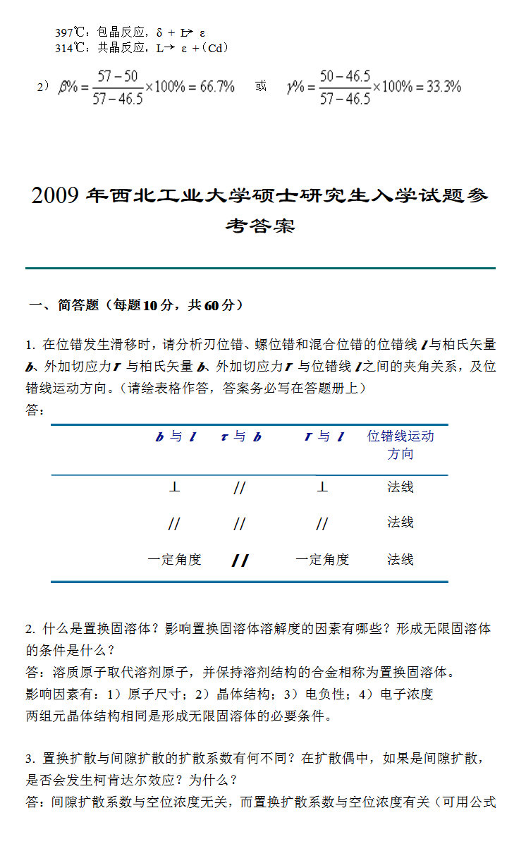 西北工业大学2008-2011材料科学基础半岛在线注册试题与答案(5)