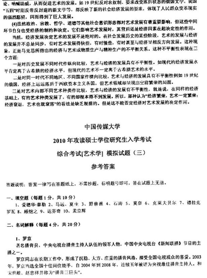中国传媒大学综合考试【艺术学】最后三套题答案(8)