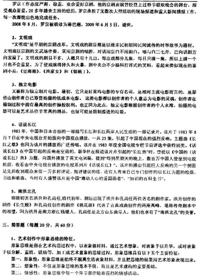 中国传媒大学综合考试【艺术学】最后三套题答案(9)