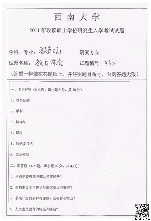 专业课半岛在线注册资料 本站小编 半岛在线注册 2018-09-062015贵州师范大学教育综合333半岛在线注册真题