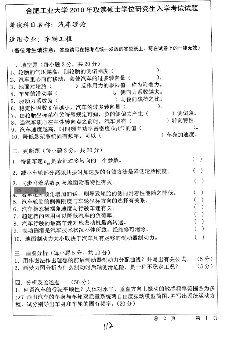 专业课大纲 本站小编 半岛在线注册 2018-11-04郑州轻工业大学2019年硕士研究生入学考试初试科目考试大纲汽车理论(科目代码:810)本考试大纲适用于报考郑州轻工业大学车辆工程(此处填写学科、专业名称)的硕士研究生的入学考试。一、考试内容及基本要求1.汽车的动力性(1)掌握汽车的动力性、最高车速、原地起步加速时间、超车加速时间、汽车的上坡能力、驱 ...