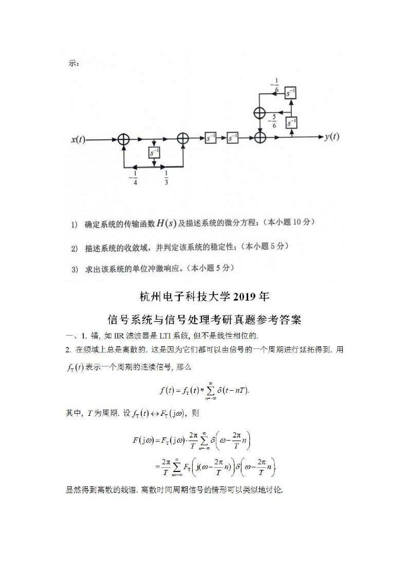 2019杭州电子科技大学半岛在线注册信号系统与信号处理试题答案全解全析(3)