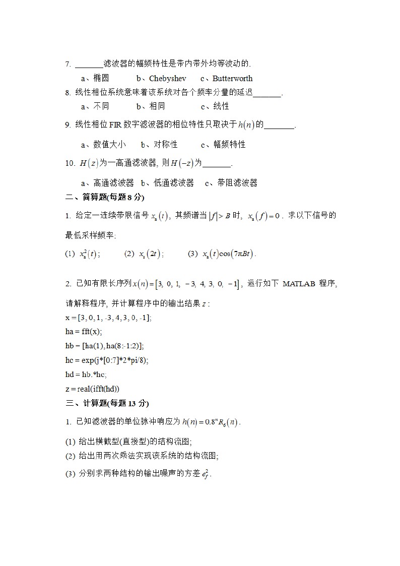 2010东南大学通信半岛在线注册复试DSP数字信号处理部分试题答案全解全析(2)