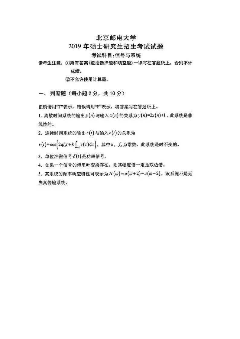 2019北京邮电大学信号与系统半岛在线注册801试题答案全解全析