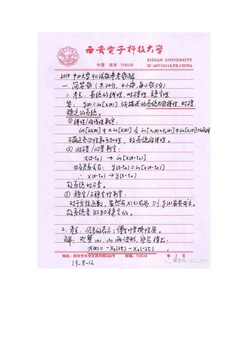 2019中山大学半岛在线注册信号系统911试题答案解析(5)