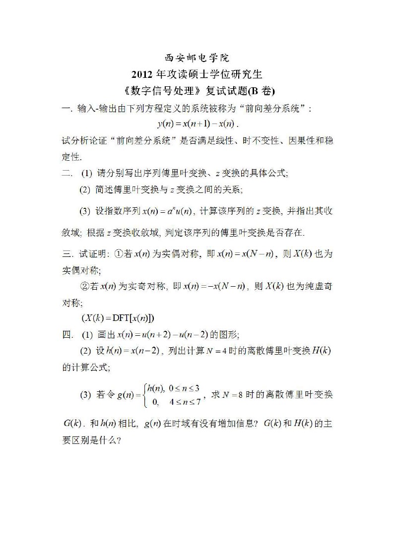 2012年西安邮电大学半岛在线注册复试DSP数字信号处理试题答案全