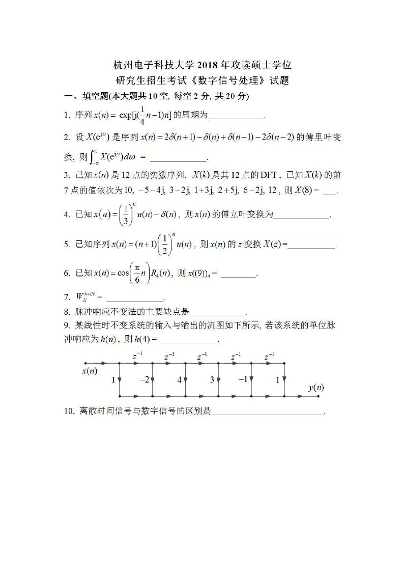 2018杭州电子科技大学半岛在线注册DSP数字信号处理真题答案解析