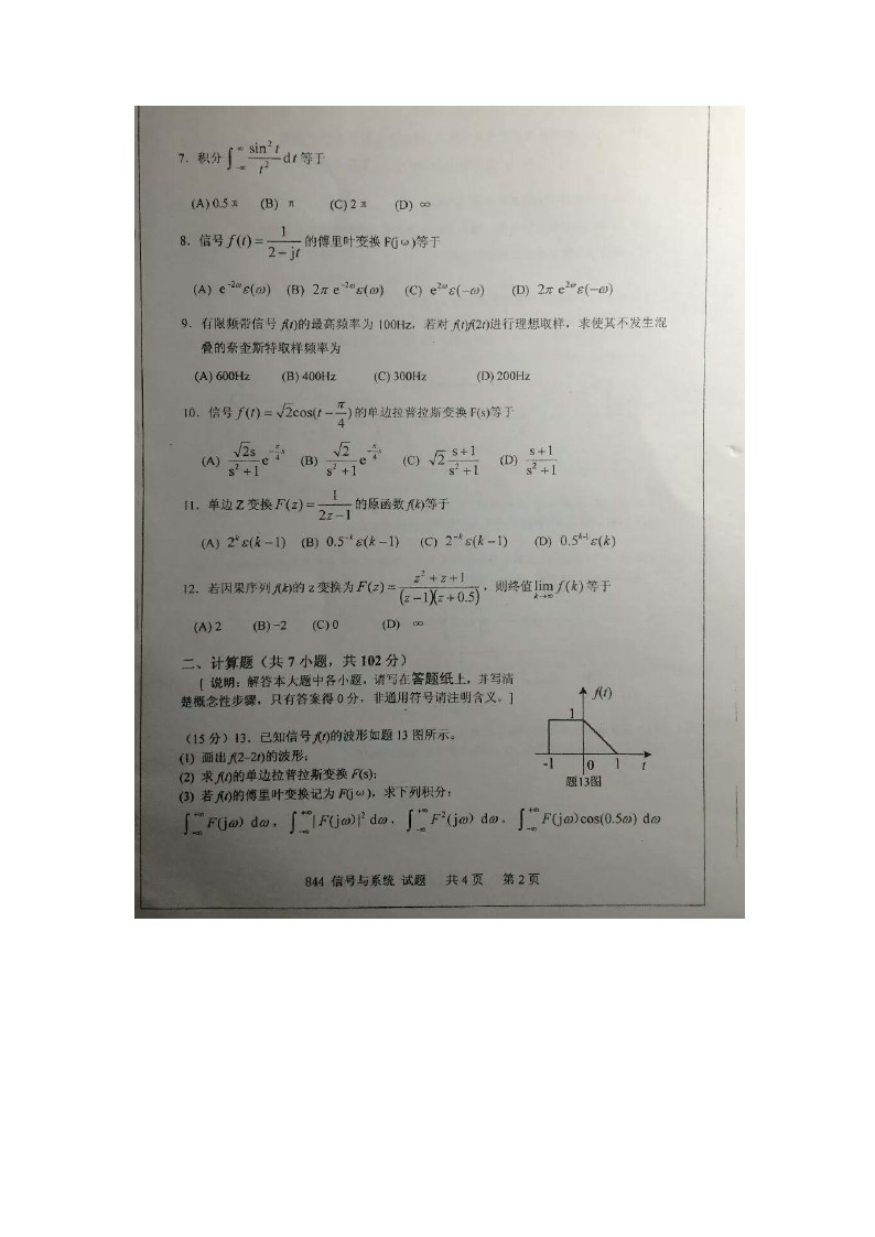 2015西安电子科技大学信号与系统844半岛在线注册真题答案全解(2)