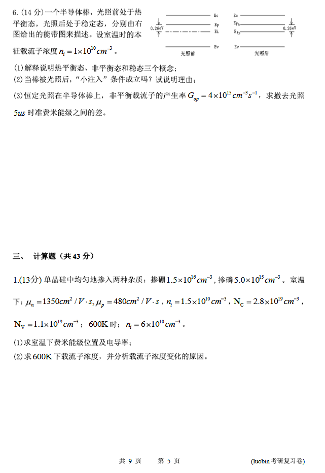 2013年东南大学半导体物理929半岛在线注册复习A卷及答案(6)