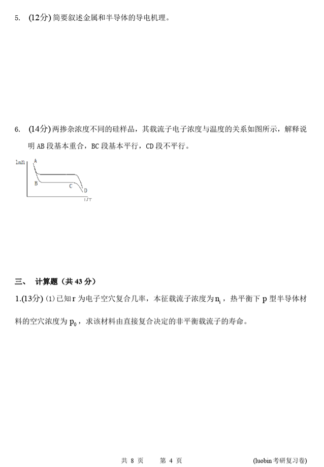2013年东南大学半导体物理929半岛在线注册复习B卷及答案(4)