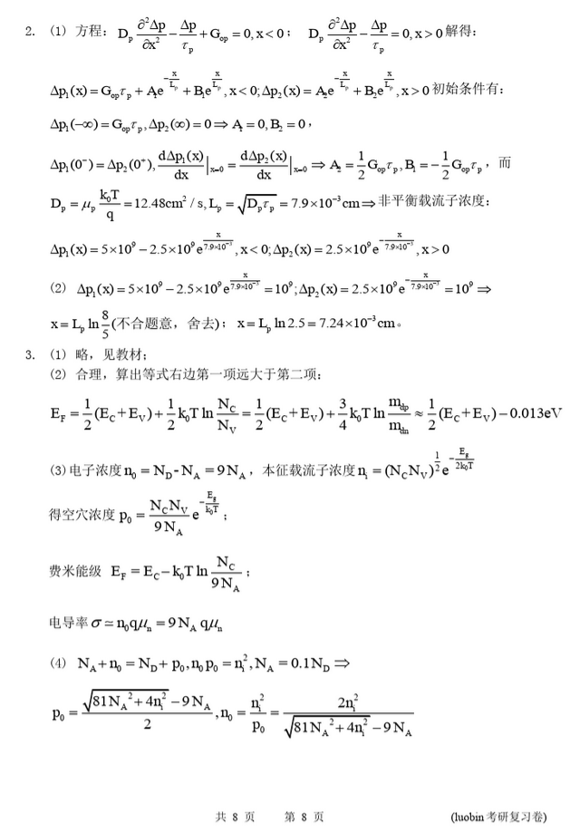 2013年东南大学半导体物理929半岛在线注册复习B卷及答案(8)
