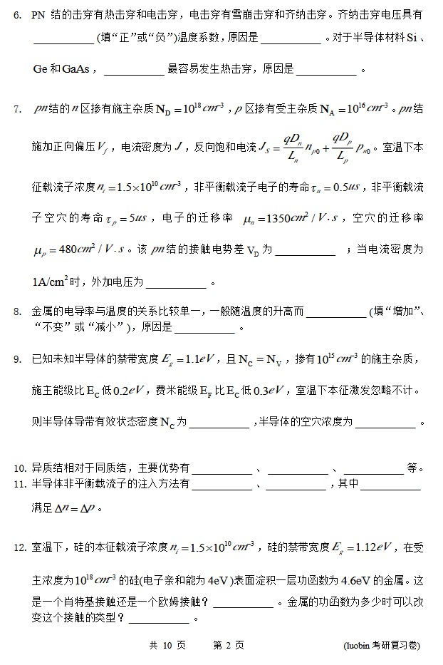 2013年东南大学半导体物理929半岛在线注册复习E卷(2)