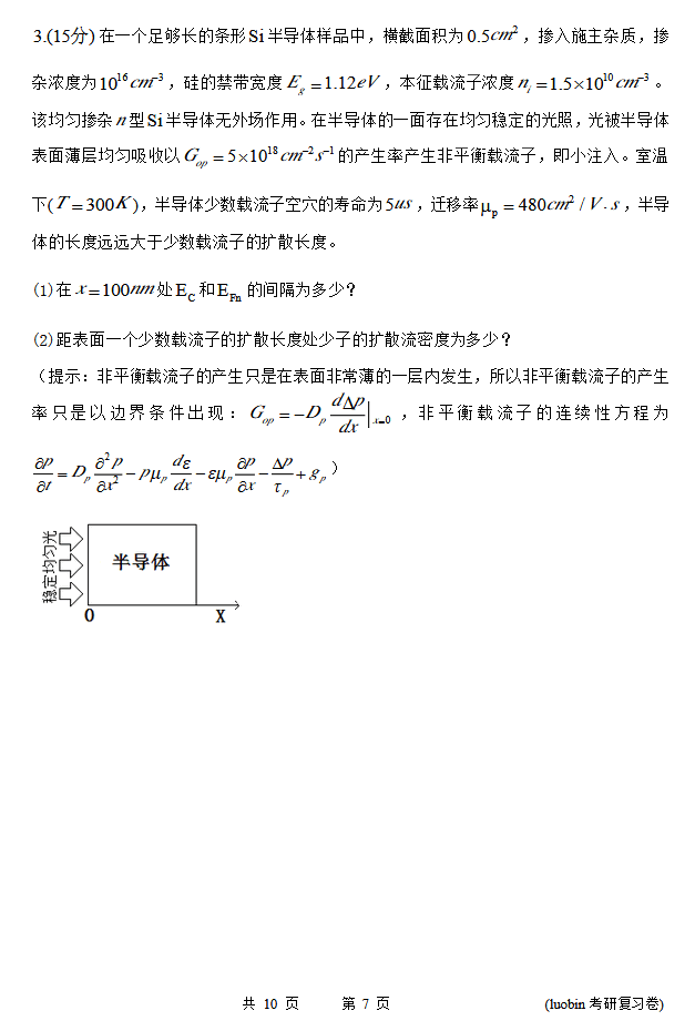 2013年东南大学半导体物理929半岛在线注册复习E卷(7)