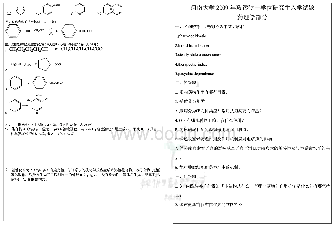 河南大学药学综合十年2005-2015半岛在线注册真题(12)