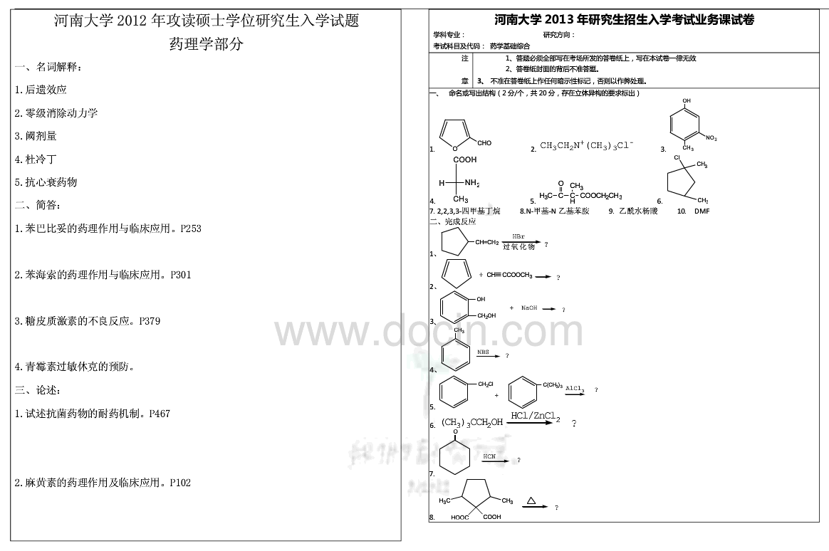 河南大学药学综合十年2005-2015半岛在线注册真题(15)