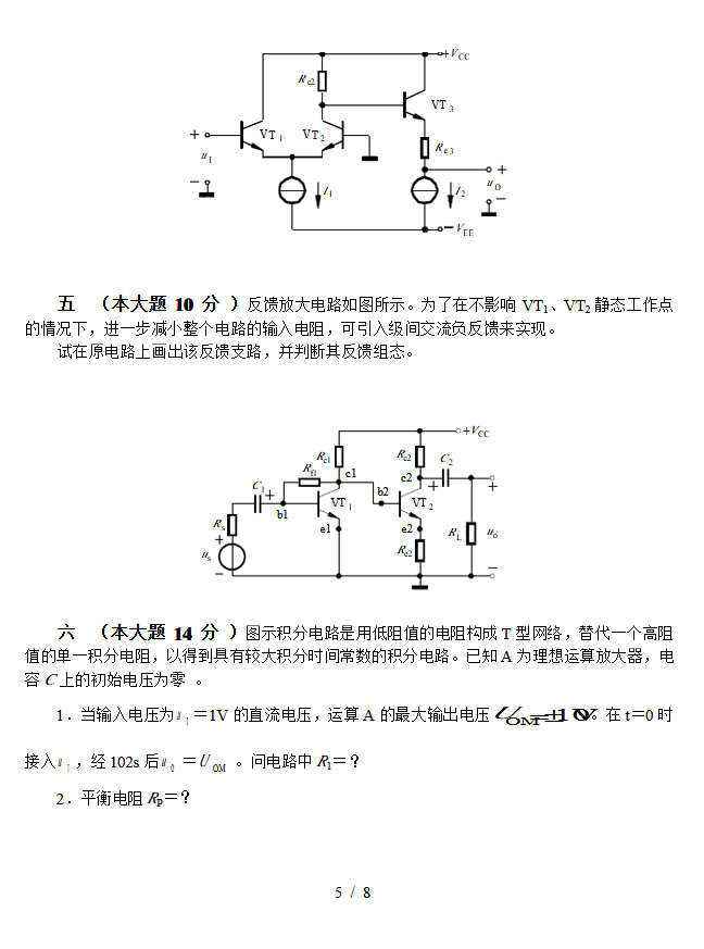 天津工业大学2007年电子技术基础半岛在线注册真题试卷(5)