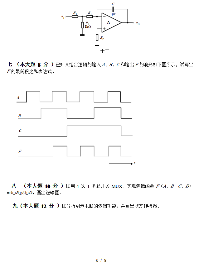天津工业大学2007年电子技术基础半岛在线注册真题试卷(6)