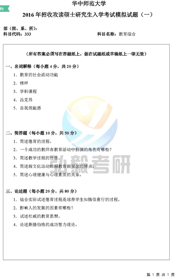 绝密押题华中师范大学333教育综合半岛在线注册押题卷最后8套