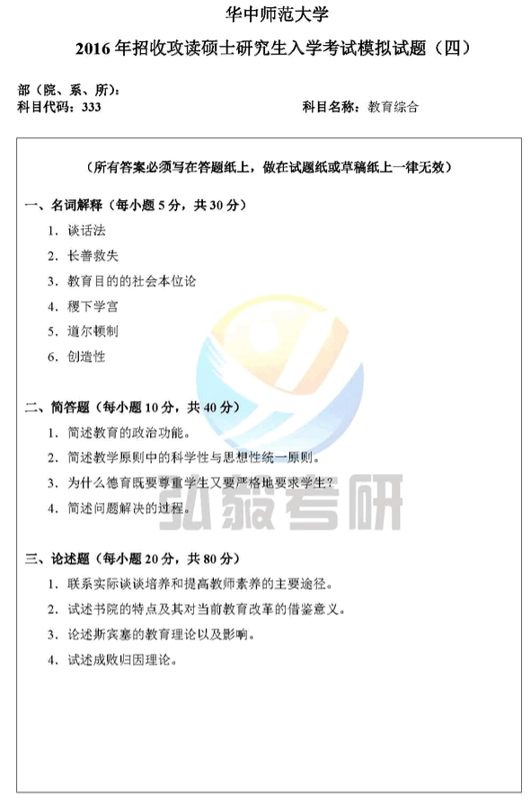 绝密押题华中师范大学333教育综合半岛在线注册押题卷最后8套(4)