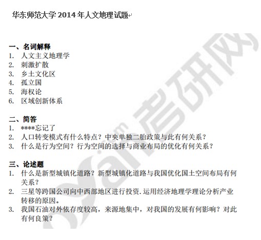 华东师范大学1999-2014人文地理半岛在线注册真题