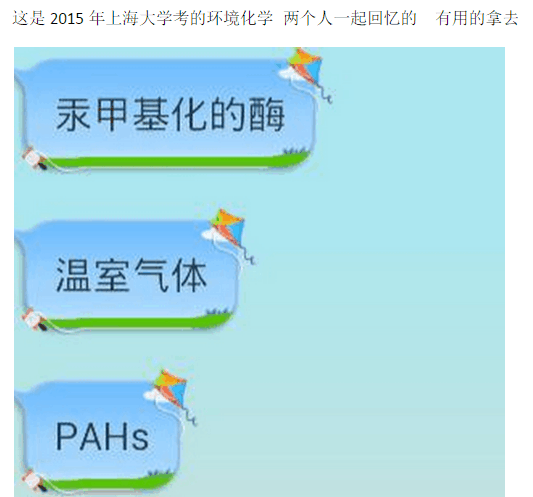 的题,这个都在大纲的规定的范围内,所以也不要掉以轻心,第六章要看,汞、多环芳烃在环境介质中的迁移和转化。学姐归纳的是很重要的知识点,但不说其他的不重要,也是要认真看的。