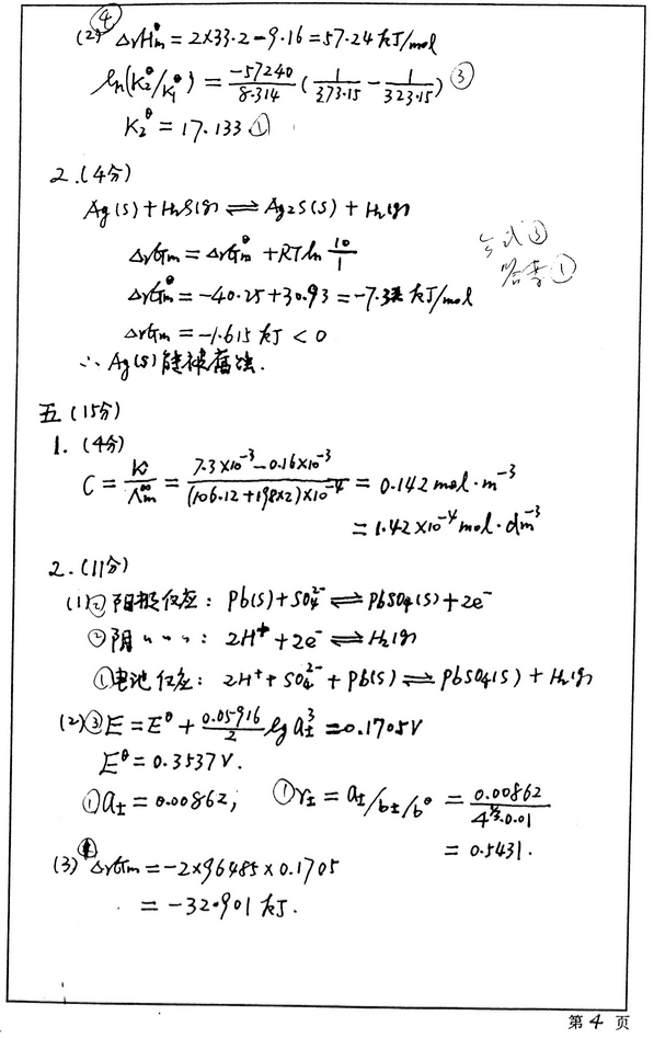 天津大学2003年《物理化学》半岛在线注册真题答案(版本1)(4)