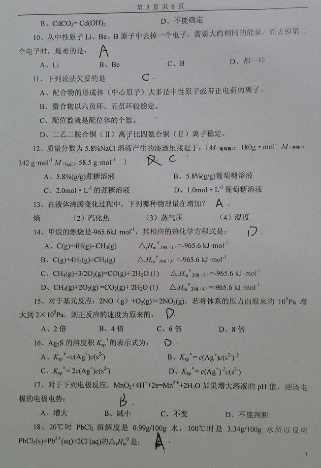 中国矿业大学无机及分析化学半岛在线注册模拟试题4带答案(3)