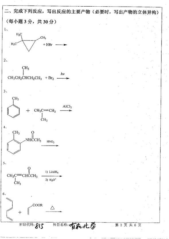 2012年中国矿业大学半岛在线注册有机化学真题(2)