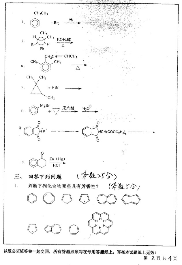 2007年中国矿业大学半岛在线注册有机化学真题(2)