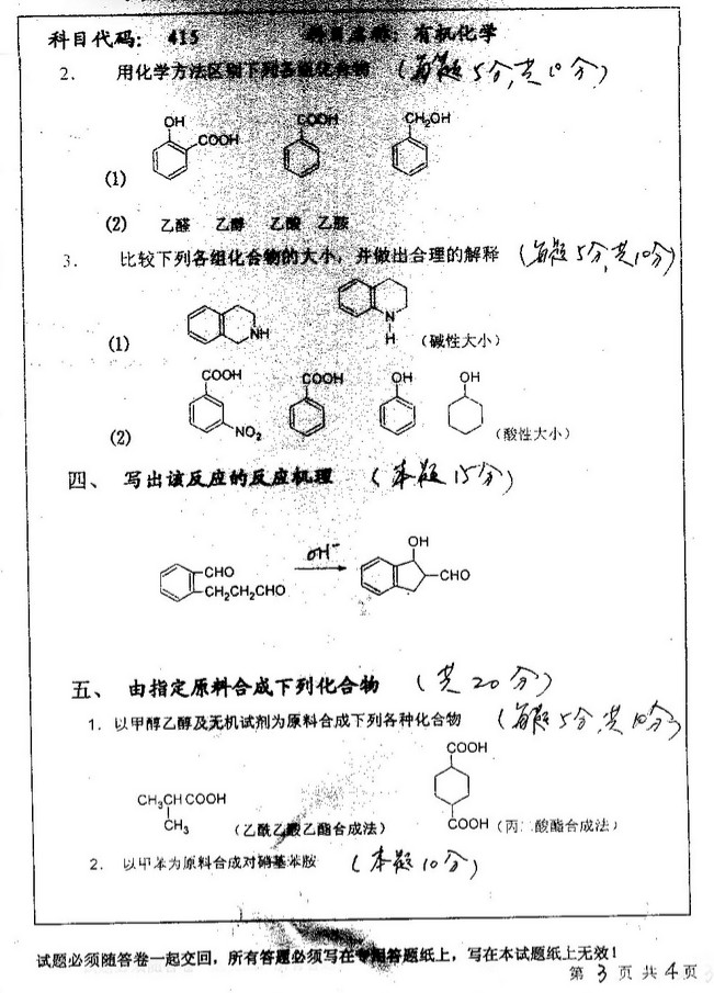 2007年中国矿业大学半岛在线注册有机化学真题(3)