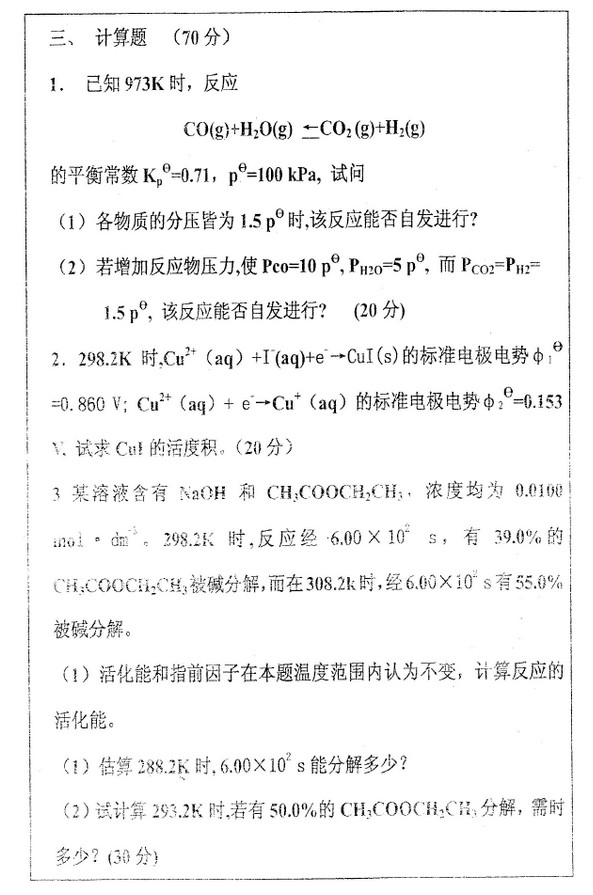 中国矿业大学2007年物理化学半岛在线注册真题(4)