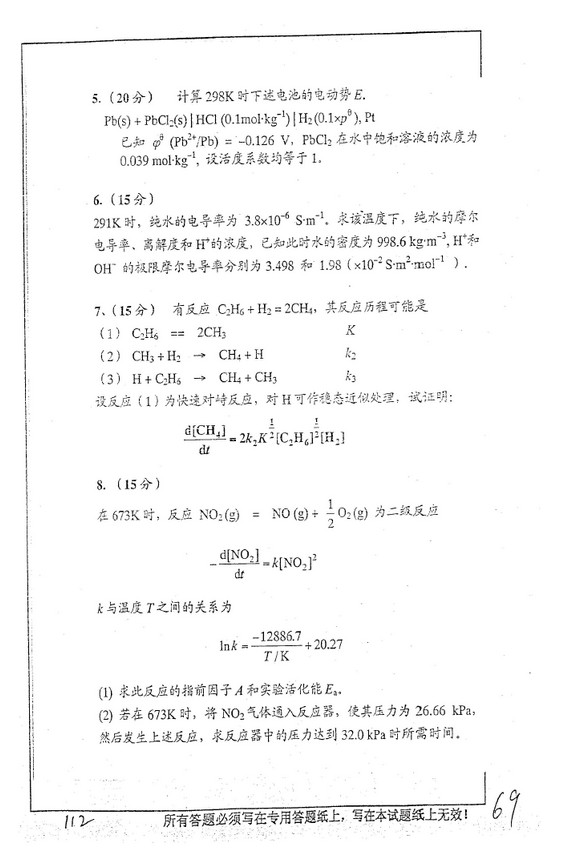 中国矿业大学2005年物理化学半岛在线注册真题(2)