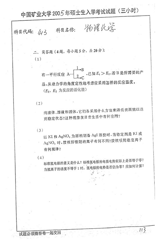 中国矿业大学2005年物理化学半岛在线注册真题(3)