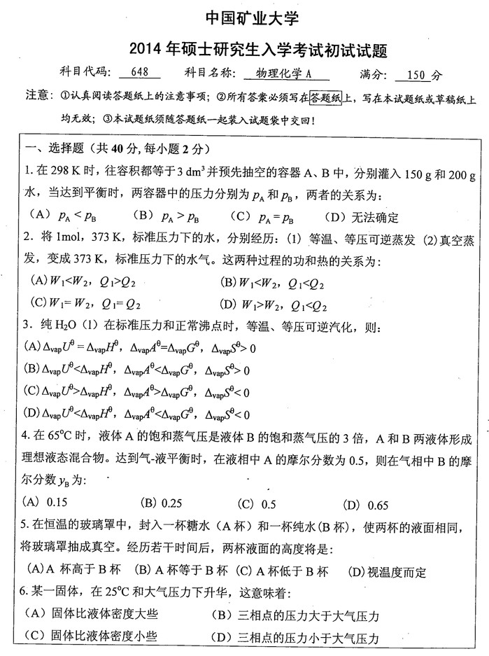 专业课半岛在线注册资料 本站小编 半岛在线注册 2019-12-14中国矿业大学2007年物理化学半岛在线注册真题