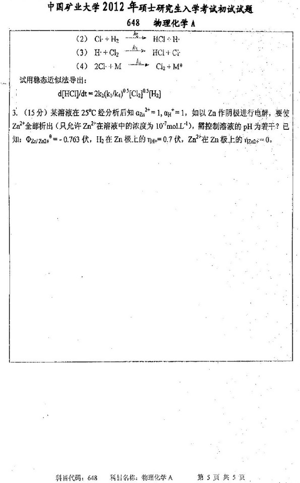 中国矿业大学2012年物理化学半岛在线注册真题(5)