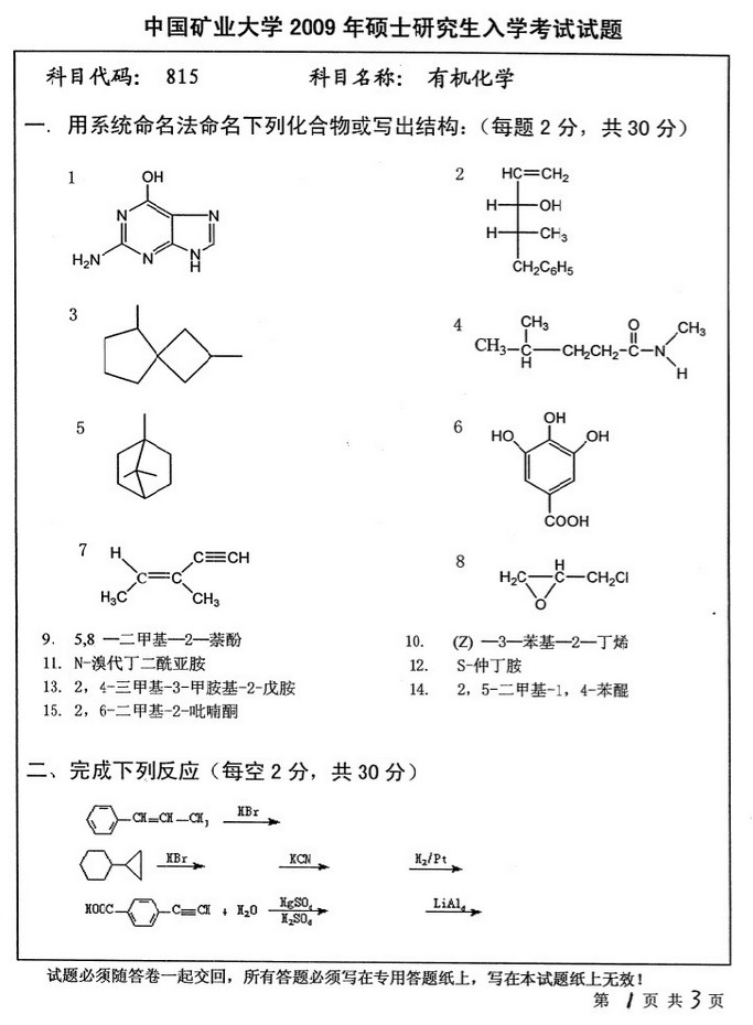 专业课半岛在线注册资料 本站小编 半岛在线注册 2019-12-14中国矿业大学2009年物理化学半岛在线注册真题