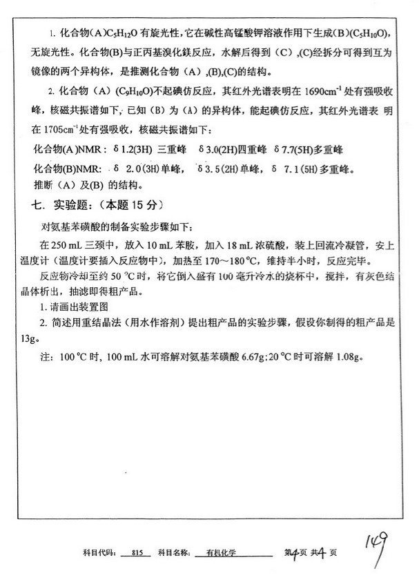 中国矿业大学2009有机化学半岛在线注册真题