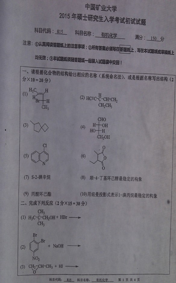 专业课半岛在线注册资料 本站小编 半岛在线注册 2019-12-14中国矿业大学2011有机化学半岛在线注册真题
