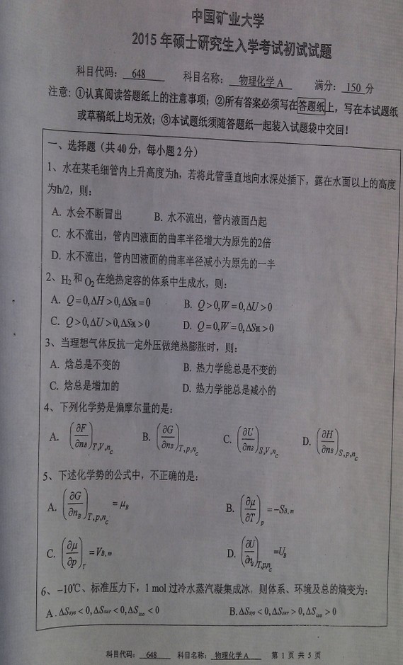 专业课半岛在线注册资料 本站小编 半岛在线注册 2019-12-14中国矿业大学2005年物理化学半岛在线注册真题
