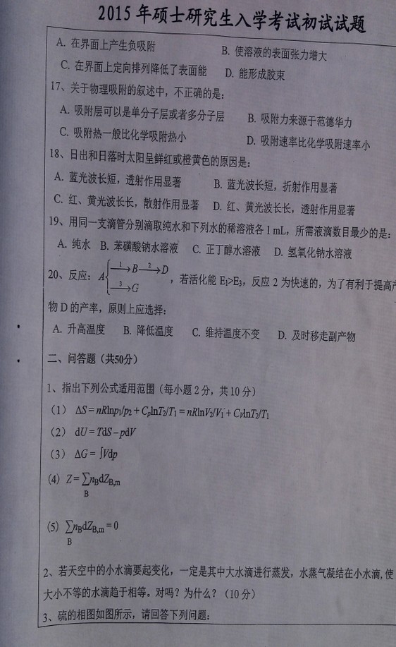 2015中国矿业大学物理化学半岛在线注册真题(3)