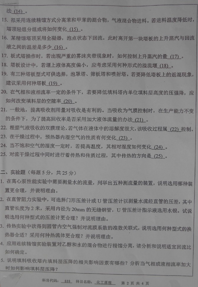 化工原理选择填空题精选 ① 物理吸收操作属于____过程,是一组分通过另一静止组分的____扩散。 ② 当平衡线在所涉及的范围内是斜率为m的直线时,则1/K =1/k +___1/k 。 ① 在填料塔中用清水吸收混合气中NH ,当水泵发生故障上水量减少时,气相总传质 单元数N ______ (A)增加; ...专业课半岛在线注册资料 本站小编 半岛在线注册 2019-12-142015中国矿业大学物理化学半岛在线注册真题