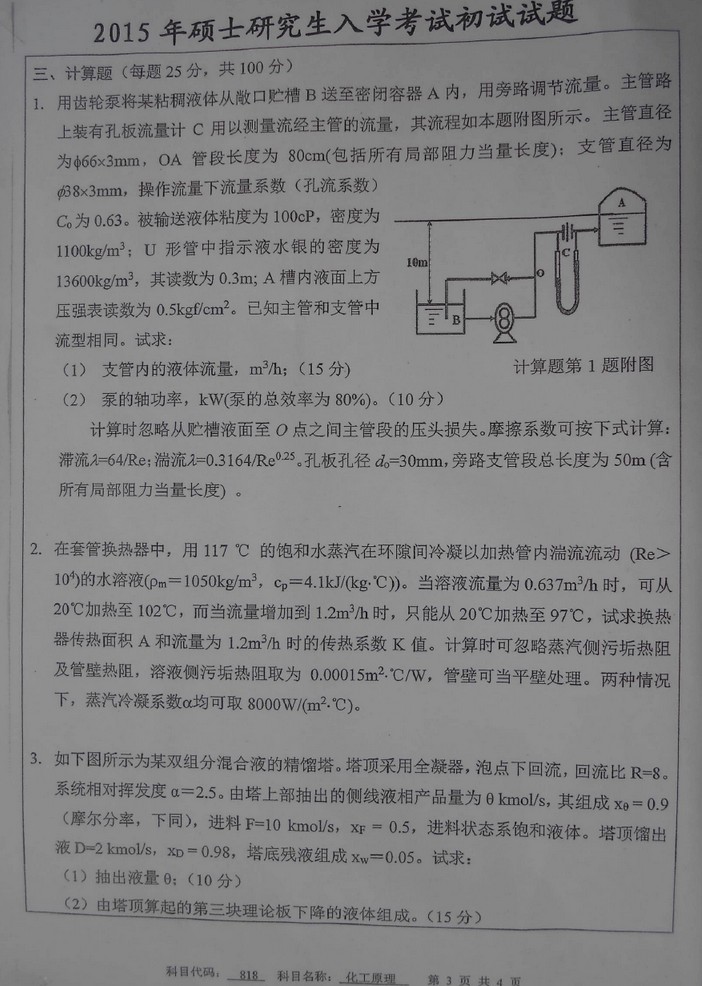 中国矿业大学2015年化工原理半岛在线注册真题(3)