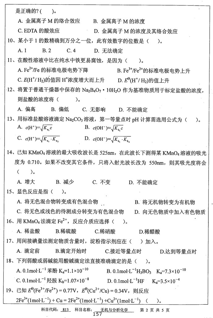 2014年中国矿业大学无机与分析化学半岛在线注册真题(2)