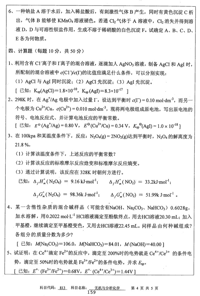 2014年中国矿业大学无机与分析化学半岛在线注册真题(4)