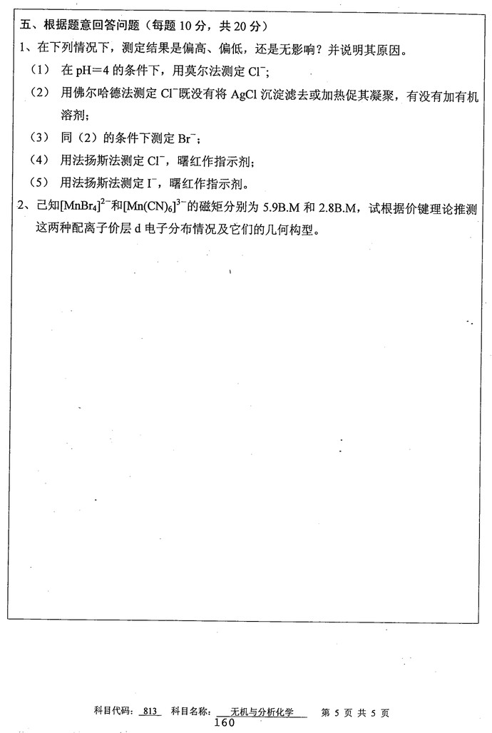 2014年中国矿业大学无机与分析化学半岛在线注册真题(5)